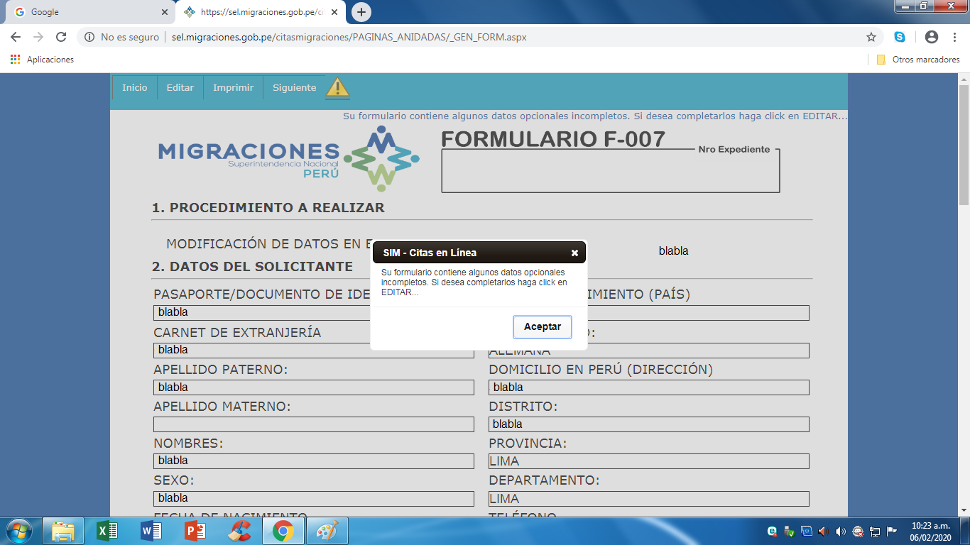 Indecopi eingereicht wurden, aber ES WIRD NICHT