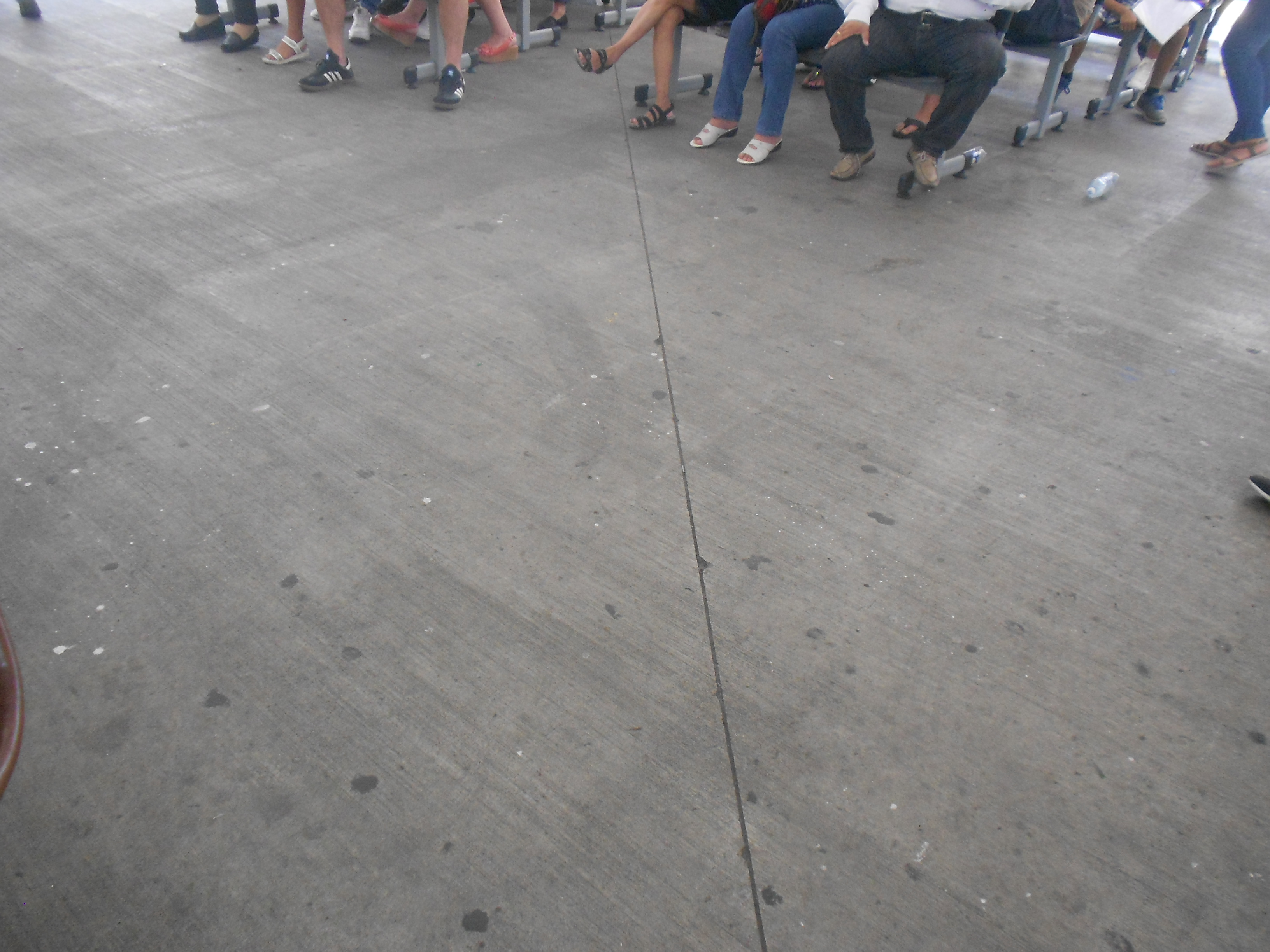 2) durch den nackten Betonboden mit Kaugumis ohne Ende