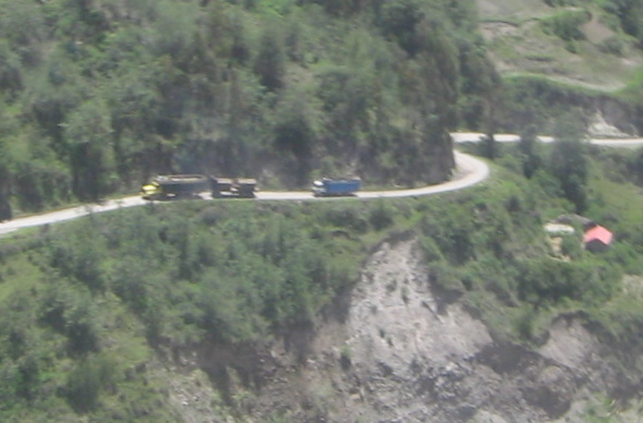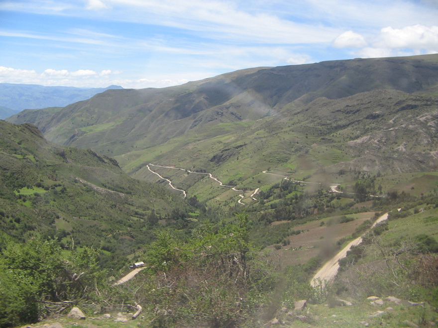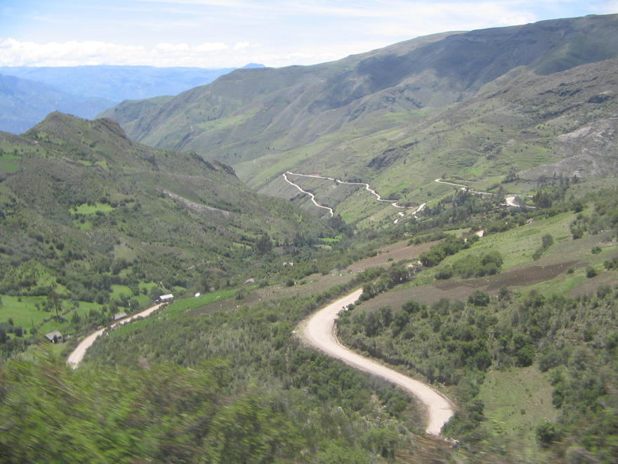 In diesem Streckenabschnitt zwischen Ocros und Chumbes waren einige "Todeskurven" anzutreffen, die ohne jegliches Geländer oder Poller praktisch senkrecht nach unten führen, wenn die Kurve verpasst wird.