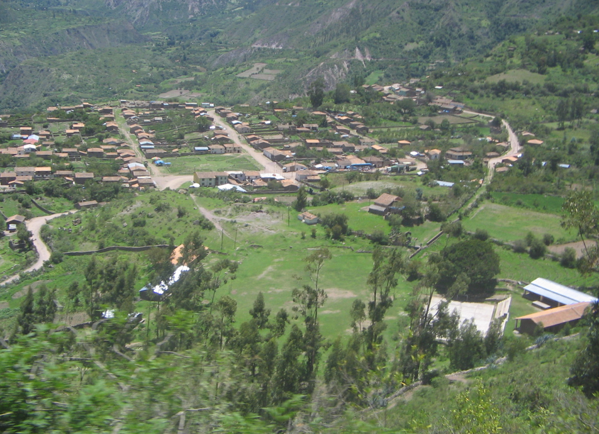 Wir hatten vom letzten Pass der Hochebene (4100 m) also 1000 Höhenmeter überwunden. Der Ort Ocros hat schon ein ziemlich warmes Klima.