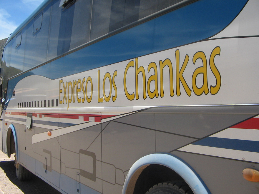 Seitliche Aufnahme des Reisebusses der Busfirma "Expreso Los Chankas"