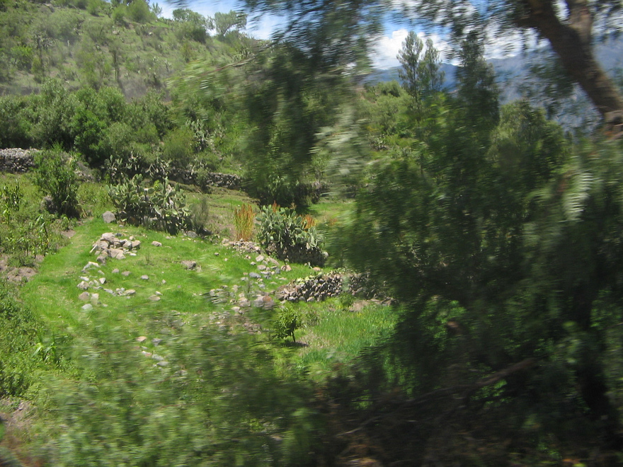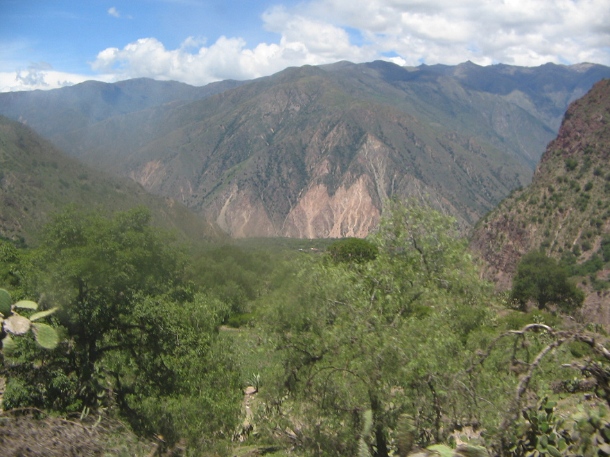 Im Pampas-Tal herrscht ein halbtropisches Klima, wo Zitrusfrüchte, Avocados, Chirimoyas, Lucmas (Lucumas [12]) etc. kultiviert werden können. Die Fauna des Tals ist zum Teil noch ursprünglich und unberührt [11]. Saumpfade führen den Fluss entlang, mit kleinen Dörfern zwischendurch [13]. Der Pampas-Fluss war bei Auseinandersetzungen in der Region Ayacucho auch regelmässig als Rückzugsgebiet gegen die herrschende Klasse, z.B. bei der Schlacht von Ayacucho gegen die kolonialistischen Spanier [14] oder während der innenpolitischen Auseinandersetzungen um Sendero und Luminoso [13]. Entsprechend dürfte die Bevölkerung z.T. heute noch von den Sendero-Luminoso-Kämpfen traumatisiert sein, und psychologische Beratung oder gar Psychotherapie gibt es in Peru kaum, und auf dem Land sowieso nicht. Hier liegt ein breites Betätigungsfeld offen. Aber reisen wir weiter: