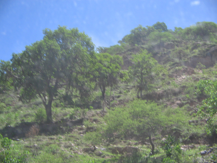... mit Bäumen an stein-erdigen Trockenhängen (leider unscharfes Foto)