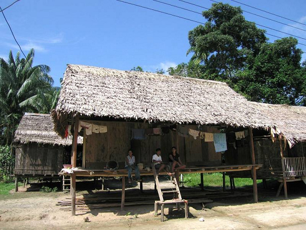 an Wäscheleinen zwischen den Stelzenhäusern. |