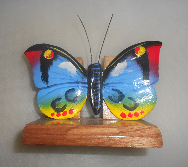 Shipibo-Ureinwohner 03a: Kunsthandwerk: Kleine Schmetterlinge aus Holz handgemalt, Region Pucallpa